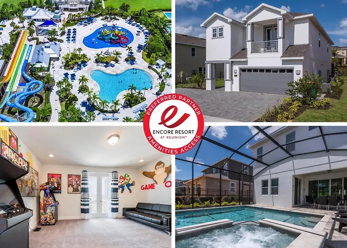 Dotée d'une cafetière/théière, villa dispose d'une cuisine complète. Vous pouvez également utiliser un micro-ondes, un réfrigérateur et de la verrerie pour préparer votre propre repas. L'aéroport le plus proche est international d'Orlando, à 45 km du logement. Un patio est disponible sur place et vous pourrez pratiquer le tennis sur gazon à proximité de cette propriété. Les installations de soins proposent des soins de beauté, une pédicure et une manucure. La présence d'un espace de jeux garantit un séjour agréable, tandis qu'un menu spécial offrent des options savoureuses aux jeunes invités.